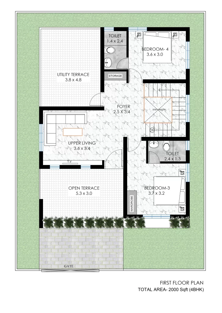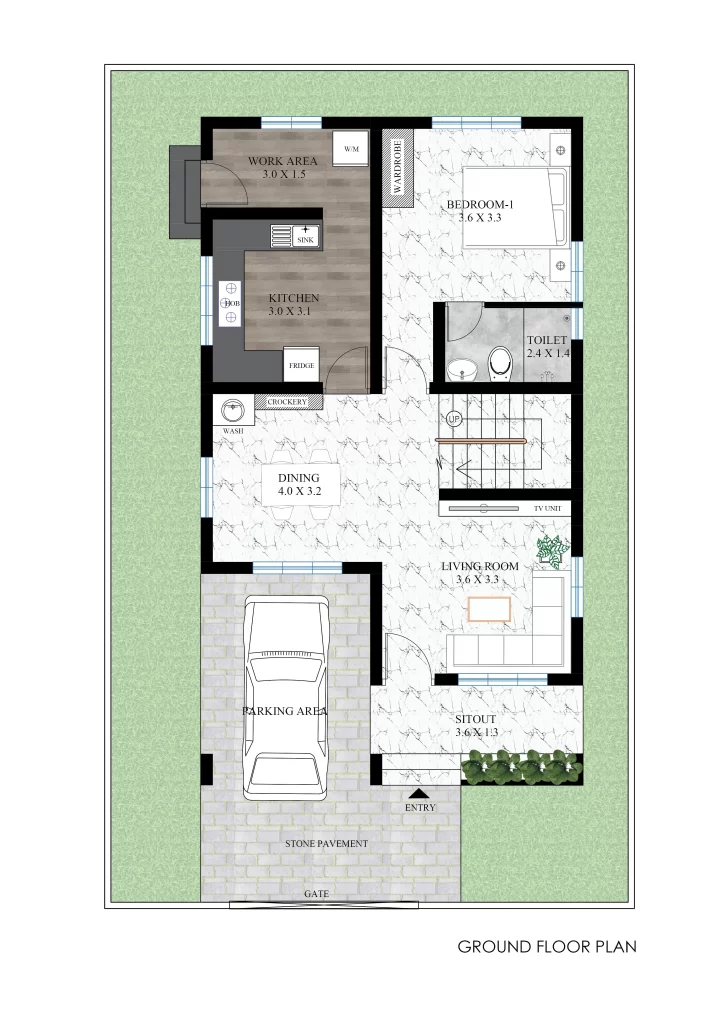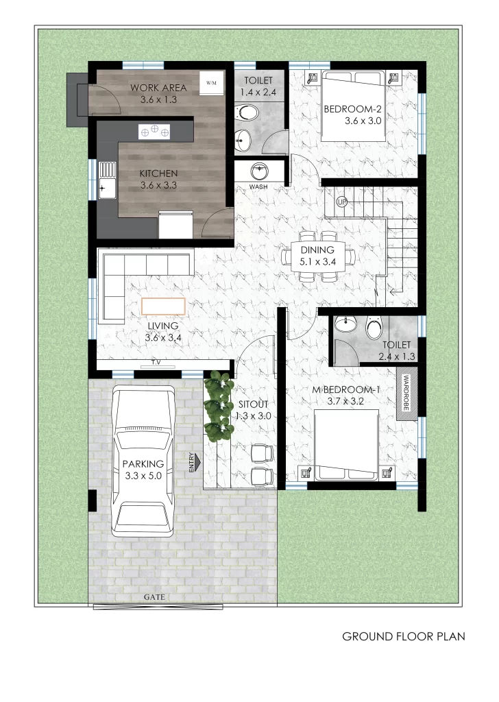 Foundation with RCC structure using high-quality materials for durability and strength. Solid block masonry with proper plastering ensures long-lasting construction.